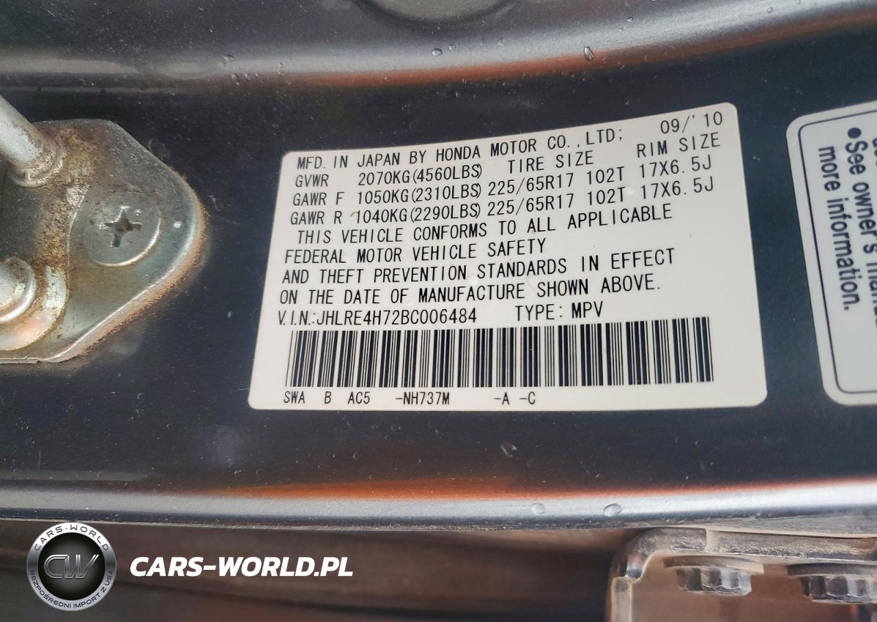 Copart Nr: C-48499246 VIN: JHLRE4H72BC006484 Port: Houston, TX