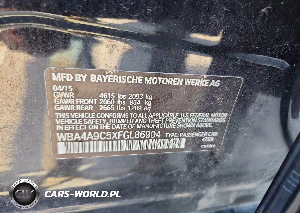 Copart Nr: C-48501106 VIN: WBA4A9C5XFGL86904 Port: Houston, TX