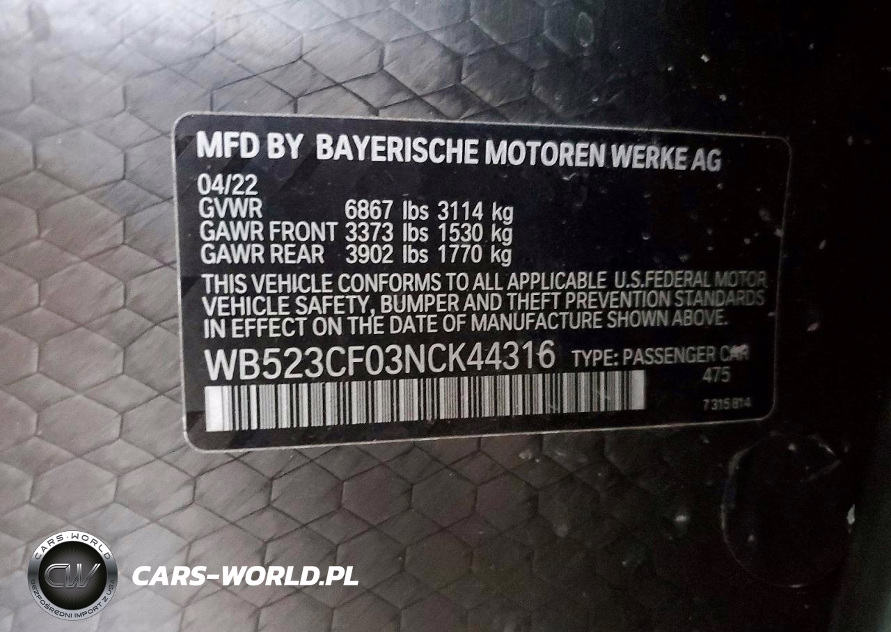 Copart Nr: C-48503356 VIN: WB523CF03NCK44316 Port: Los Angeles, CA