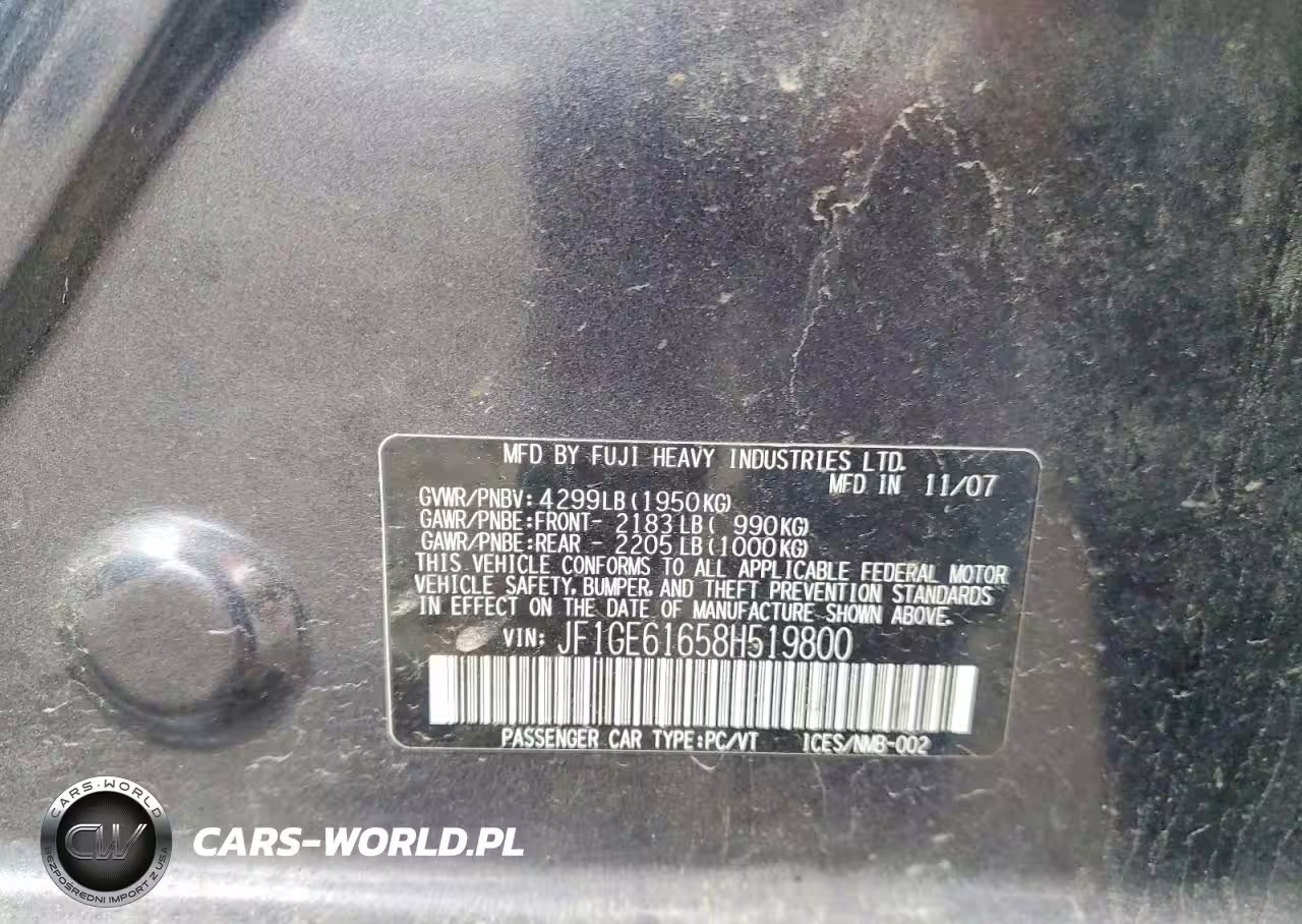 Copart Nr: C-48511306 VIN: JF1GE61658H519800 Port: Elizabeth, NJ