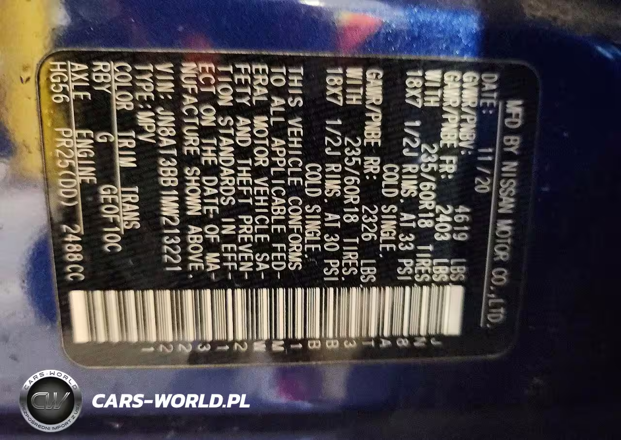 Copart Nr: C-48513726 VIN: JN8AT3BB1MW213221 Port: Elizabeth, NJ