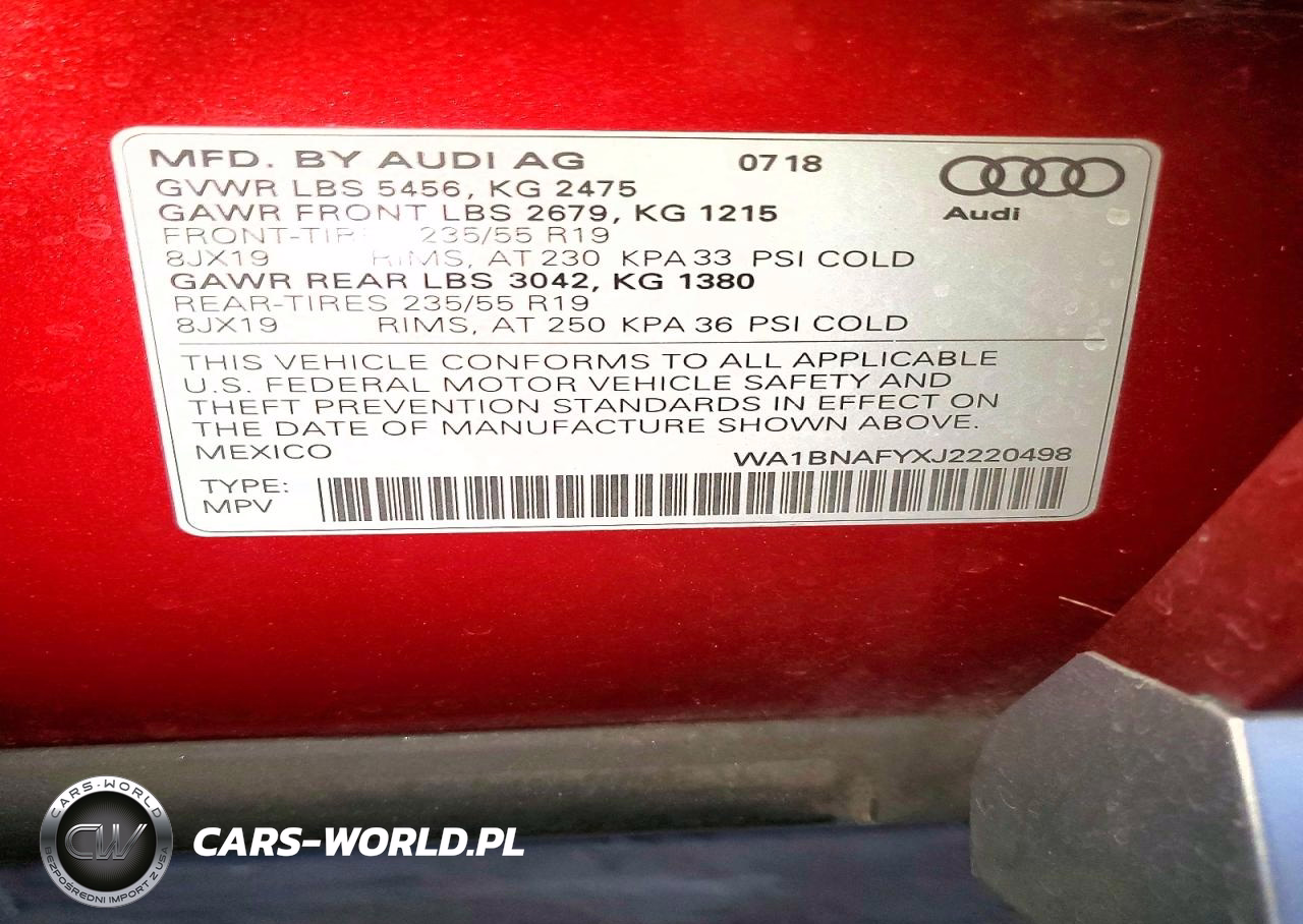 Copart Nr: C-48524156 VIN: WA1BNAFYXJ2220498 Port: Los Angeles, CA