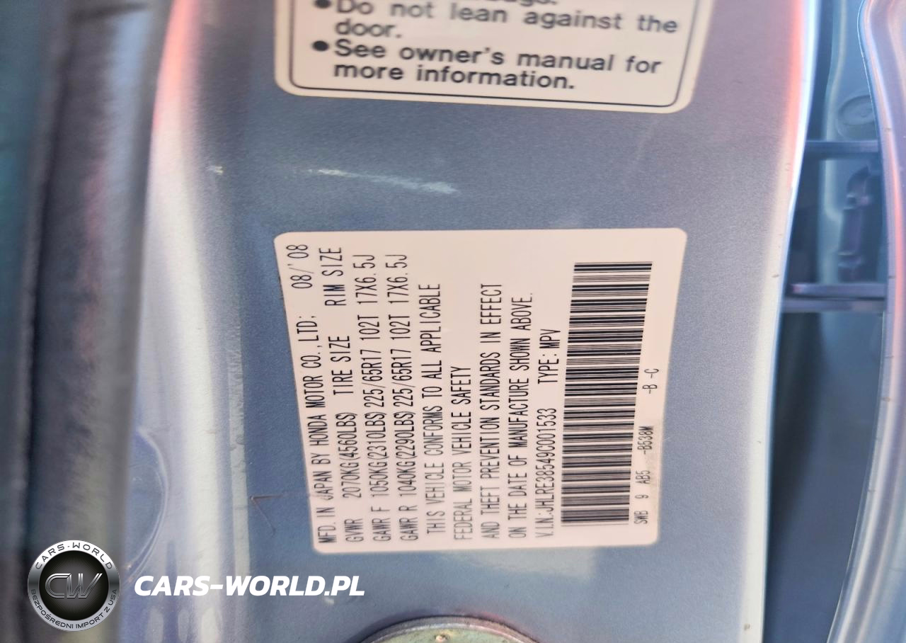 Copart Nr: C-48527106 VIN: JHLRE38549C001533 Port: Houston, TX