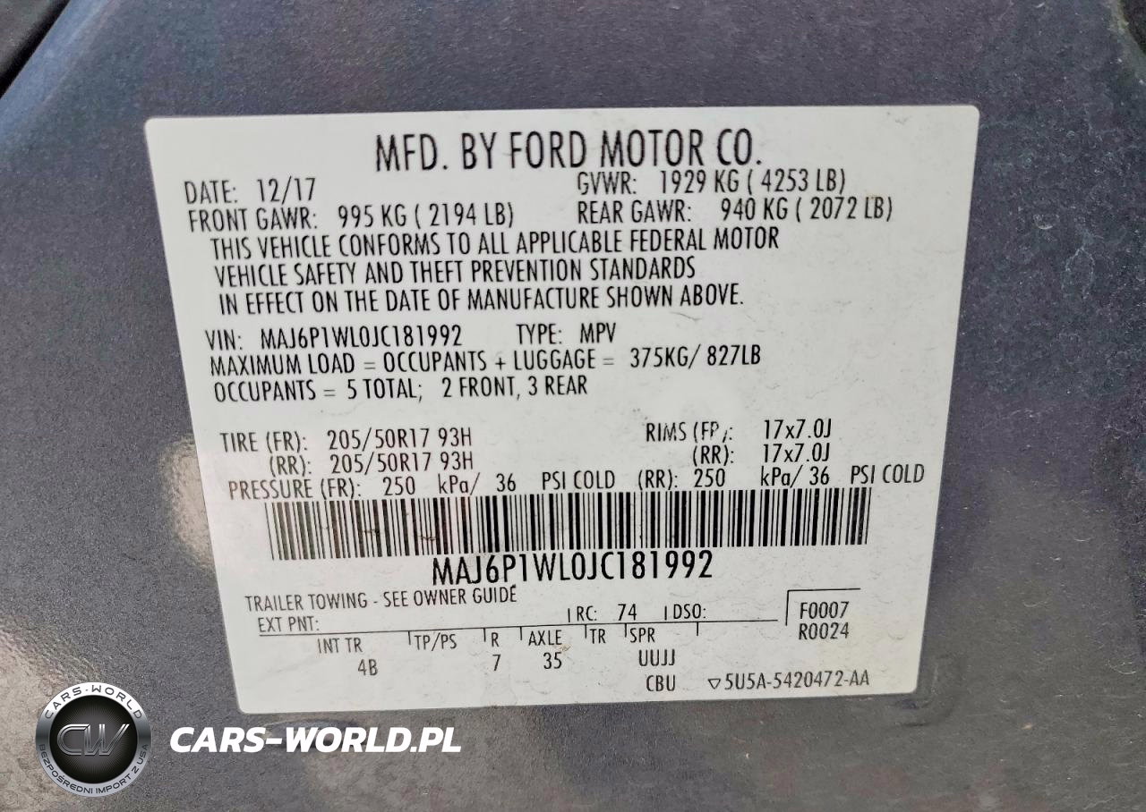 Copart Nr: C-48535126 VIN: MAJ6P1WL0JC181992 Port: Los Angeles, CA