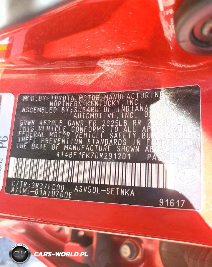 Copart Nr: C-48543756 VIN: 4T4BF1FK7DR291201 Port: Los Angeles, CA