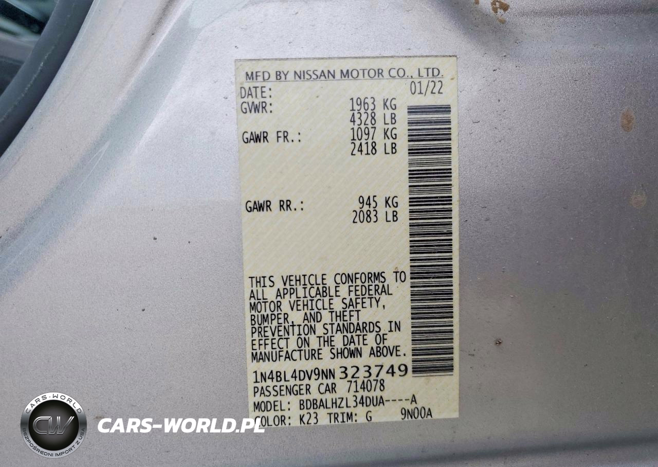 Copart Nr: C-48584896 VIN: 1N4BL4DV9NN323749 Port: Elizabeth, NJ