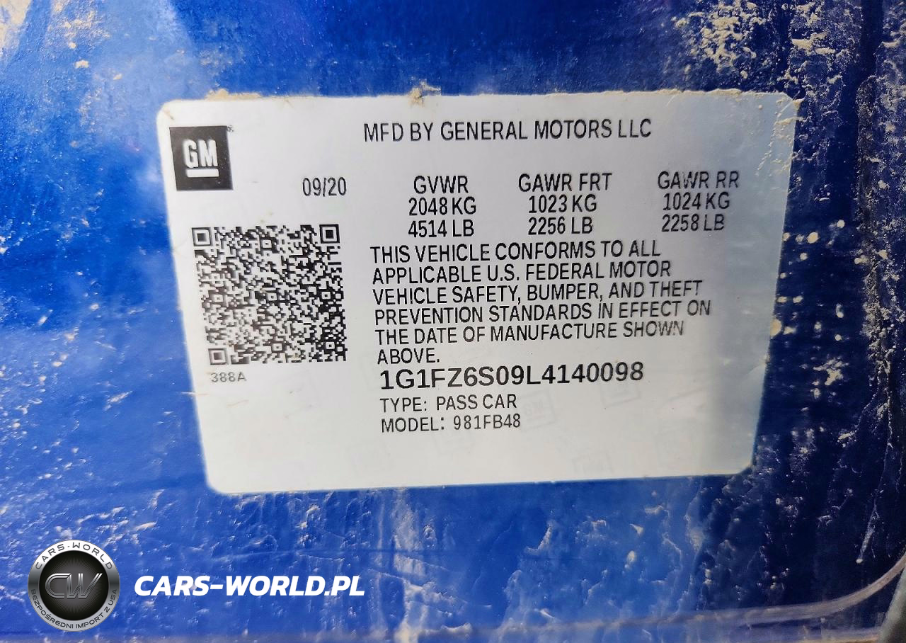 Copart Nr: C-48585526 VIN: 1G1FZ6S09L4140098 Port: Elizabeth, NJ