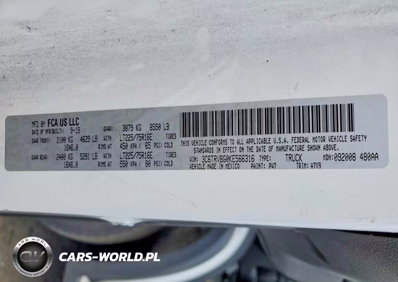 Copart Nr: C-48595926 VIN: 3C6TRVBG0KE566316 Port: Elizabeth, NJ