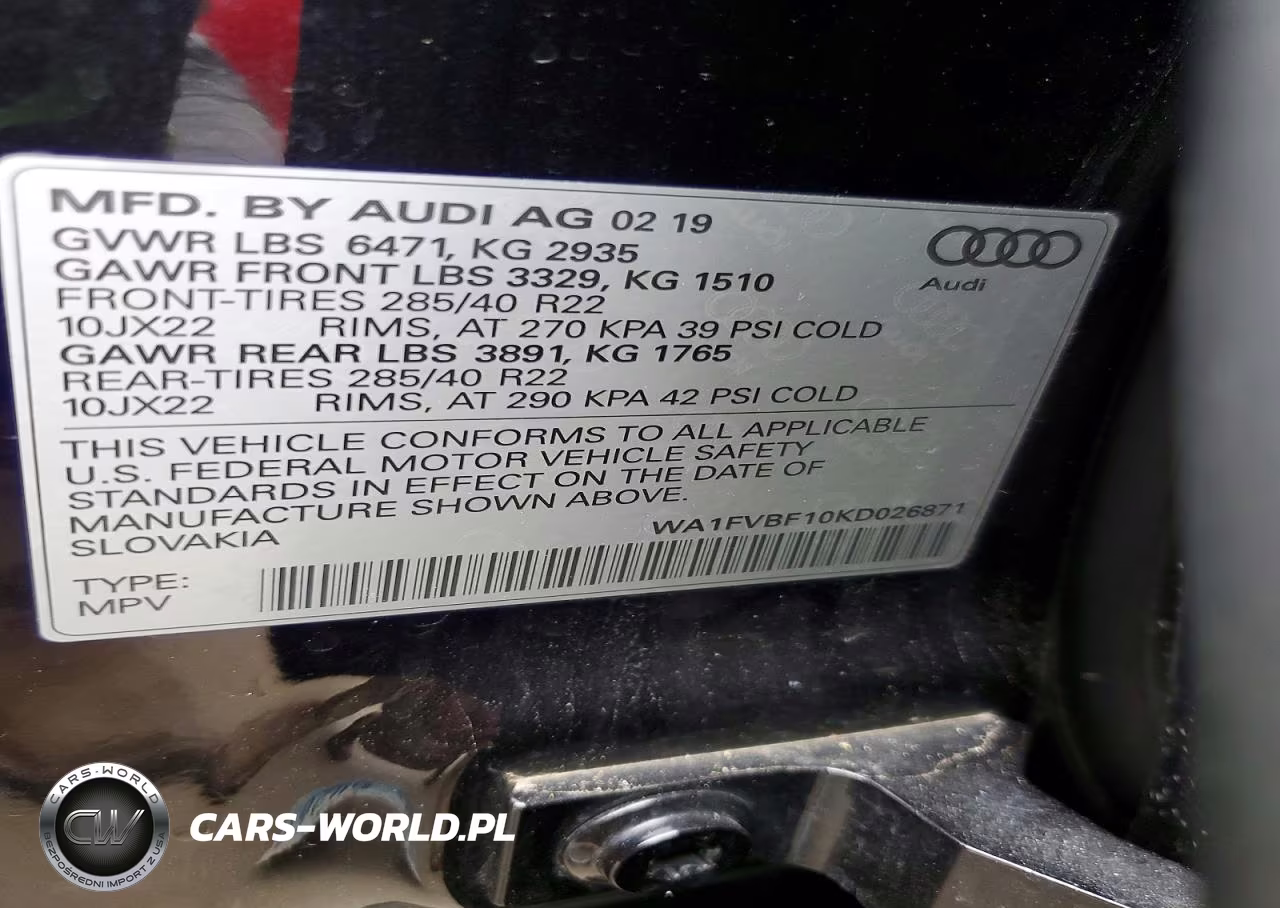 Copart Nr: C-48602646 VIN: WA1FVBF10KD026871 Port: Indianapolis, IN