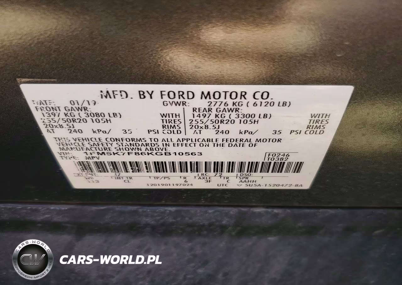 Copart Nr: C-48622796 VIN: 1FM5K7F86KGB10563 Port: Indianapolis, IN