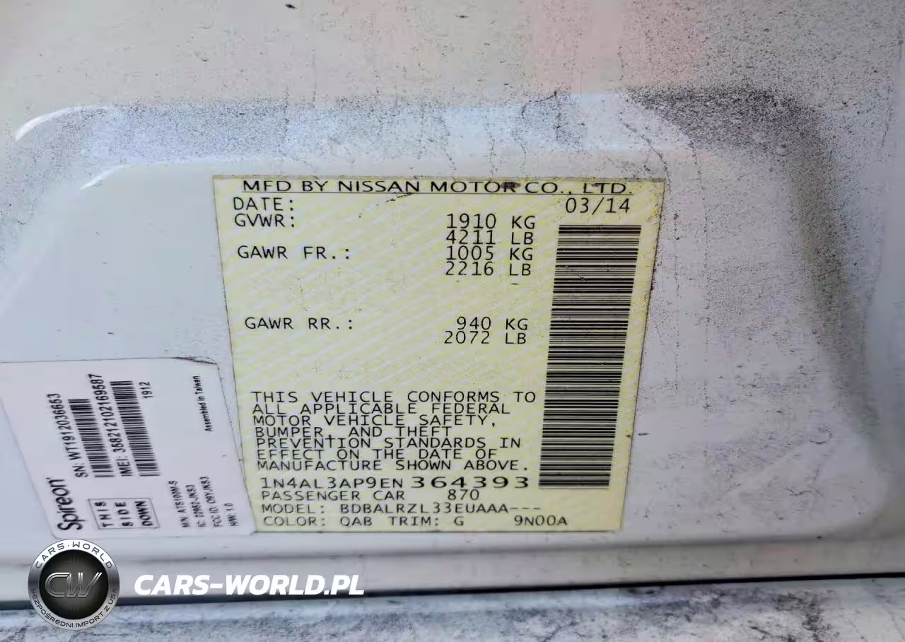 Copart Nr: C-48627996 VIN: 1N4AL3AP9EN364393 Port: Savannah, GA