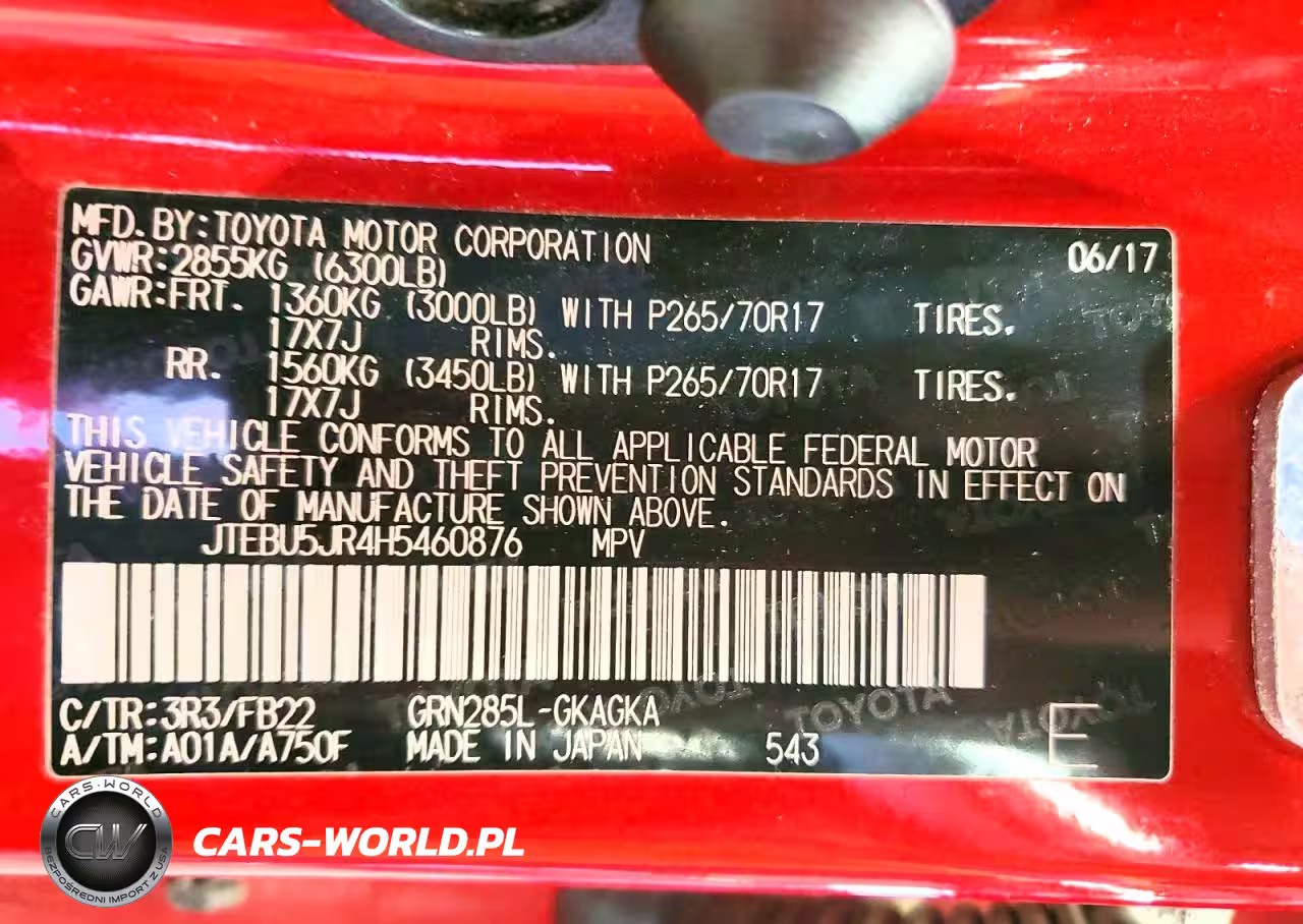 Copart Nr: C-48637596 VIN: JTEBU5JR4H5460876 Port: Elizabeth, NJ