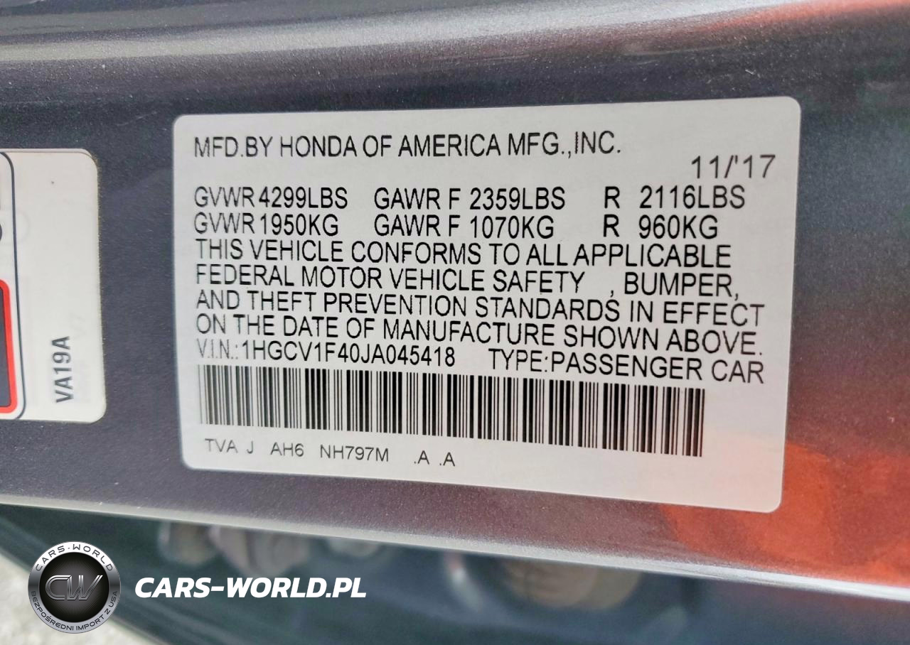 Copart Nr: C-48646076 VIN: 1HGCV1F40JA045418 Port: Los Angeles, CA
