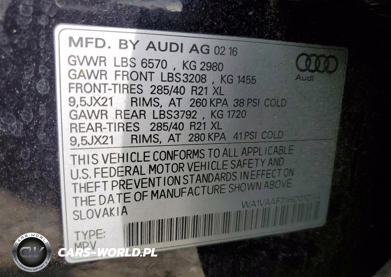 Copart Nr: C-48652666 VIN: WA1VAAF71HD010144 Port: Savannah, GA