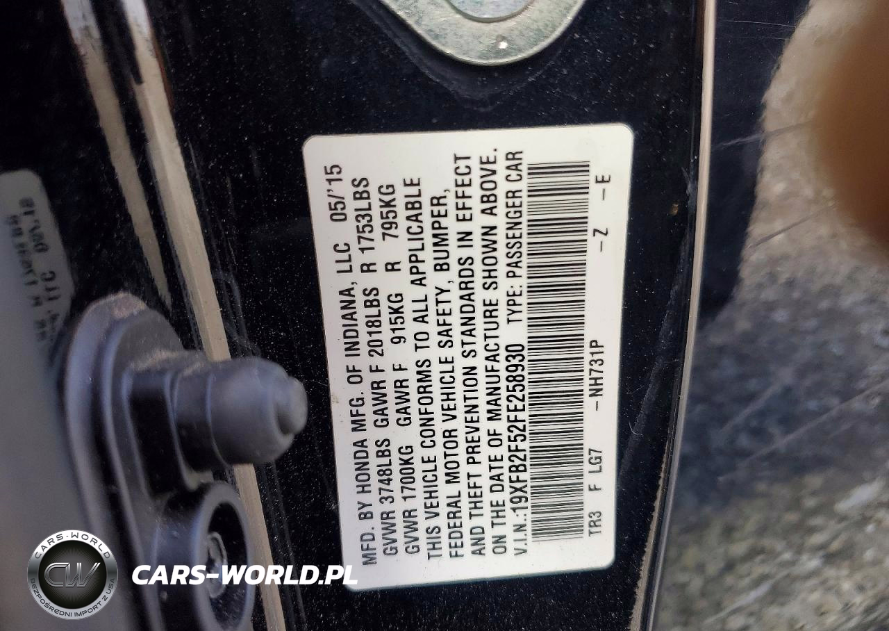 Copart Nr: C-48655596 VIN: 19XFB2F52FE258930 Port: Indianapolis, IN