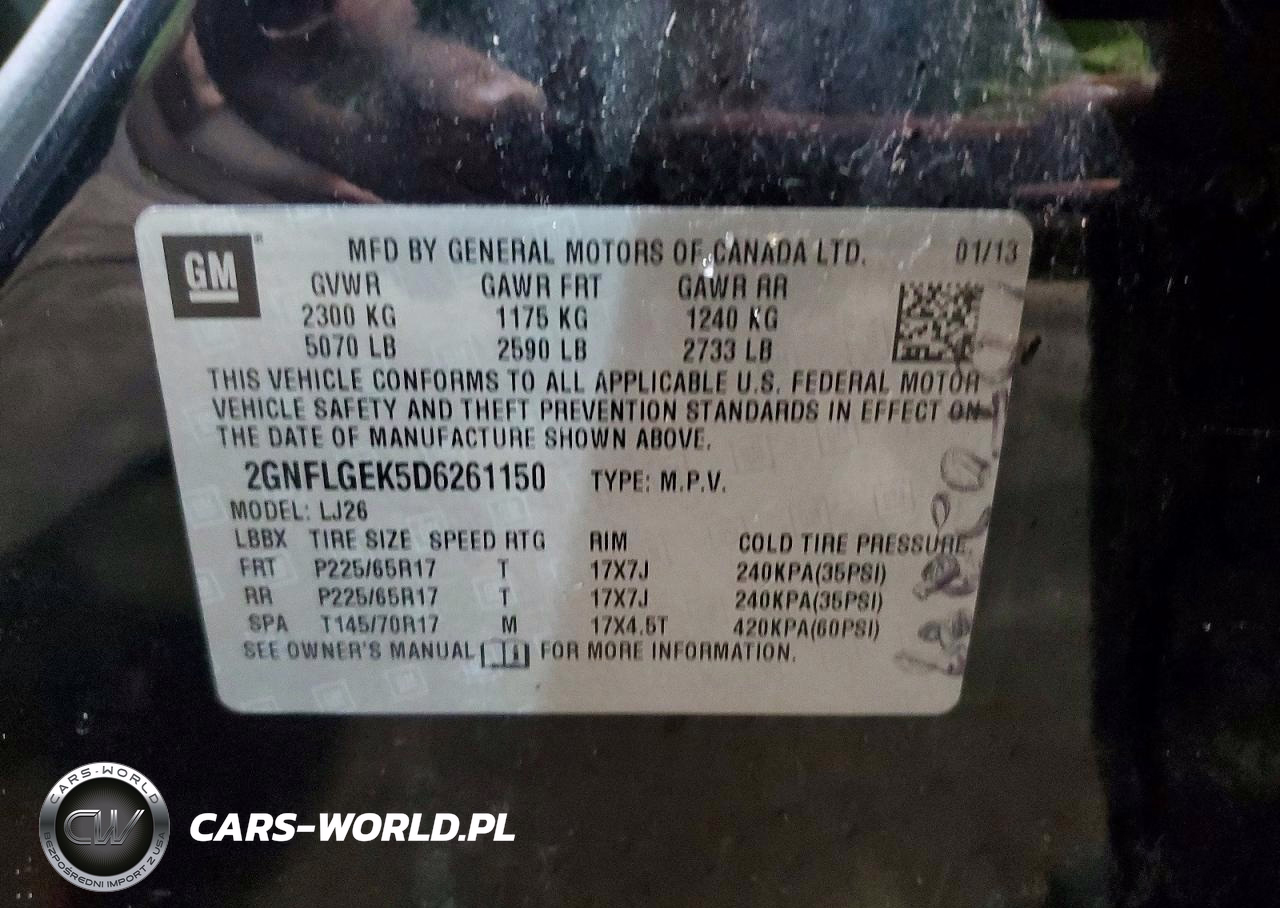 Copart Nr: C-48659326 VIN: 2GNFLGEK5D6261150 Port: Indianapolis, IN