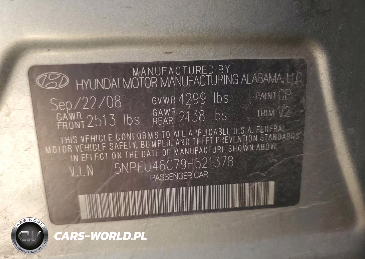 Copart Nr: C-48671556 VIN: 5NPEU46C79H521378 Port: Los Angeles, CA