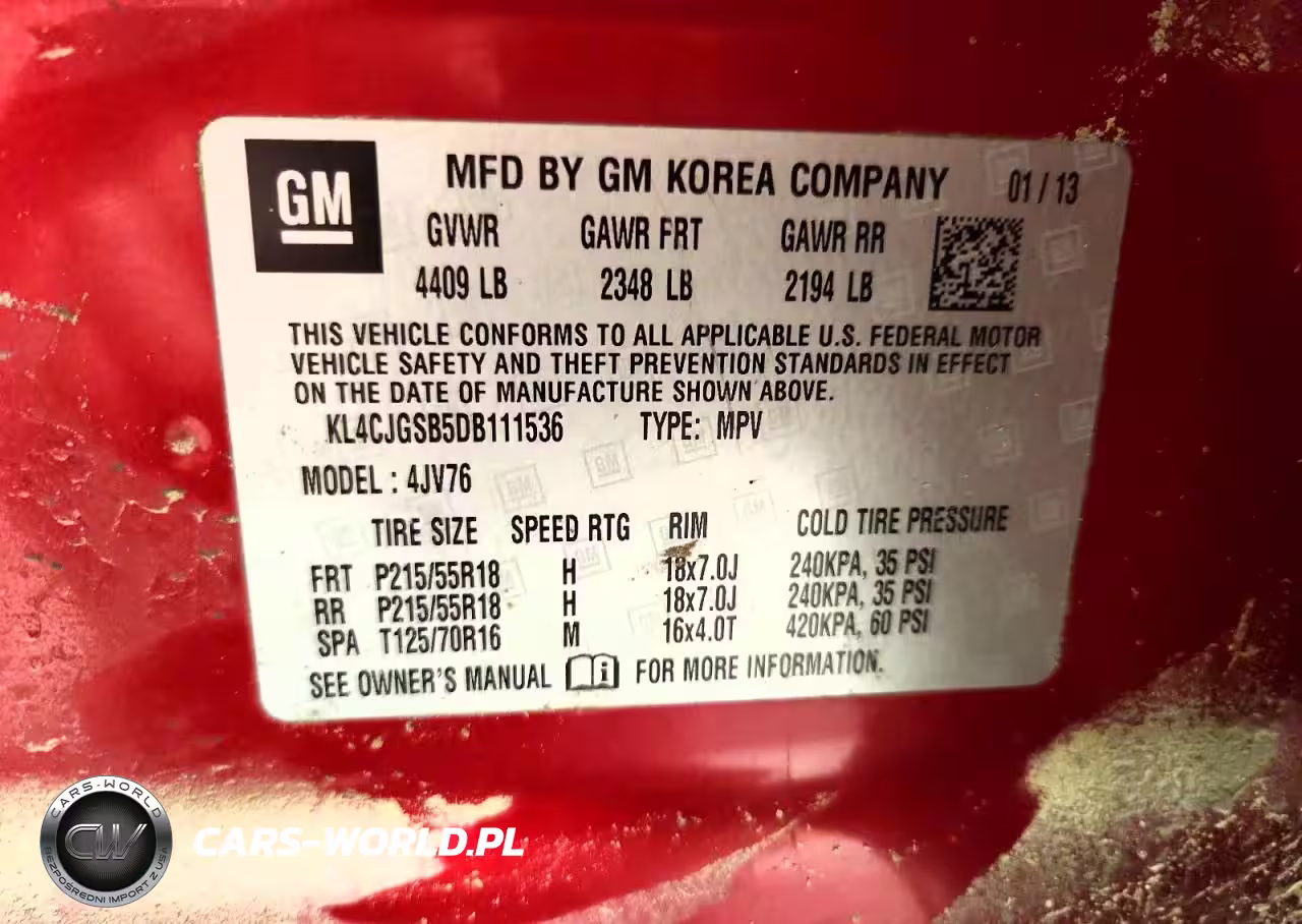 Copart Nr: C-48676026 VIN: KL4CJGSB5DB111536 Port: Indianapolis, IN