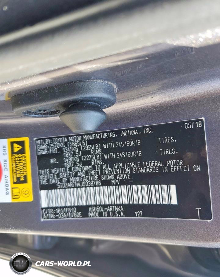 Copart Nr: C-48680256 VIN: 5TDZARFH4JS038786 Port: Savannah, GA