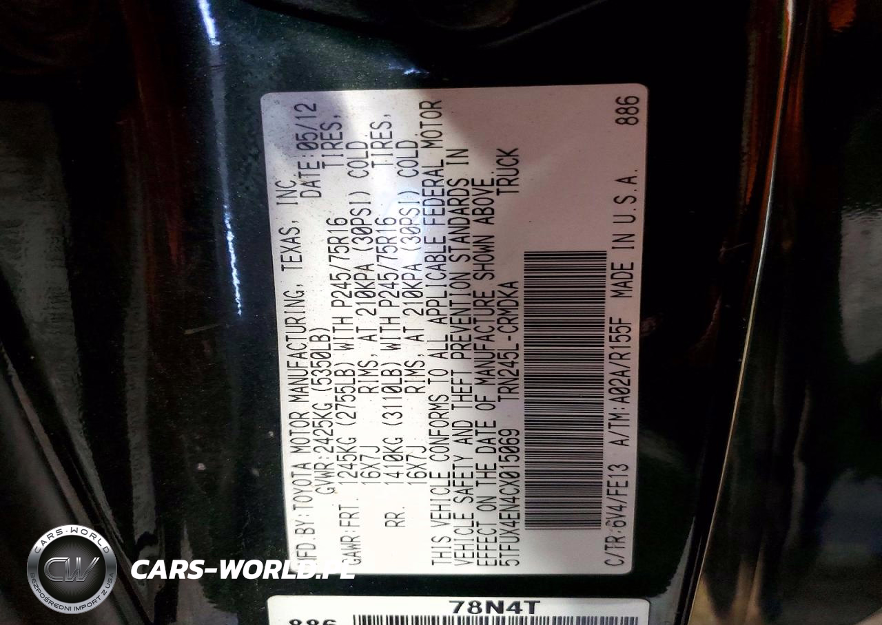 Copart Nr: C-48682456 VIN: 5TFUX4EN4CX015069 Port: Elizabeth, NJ