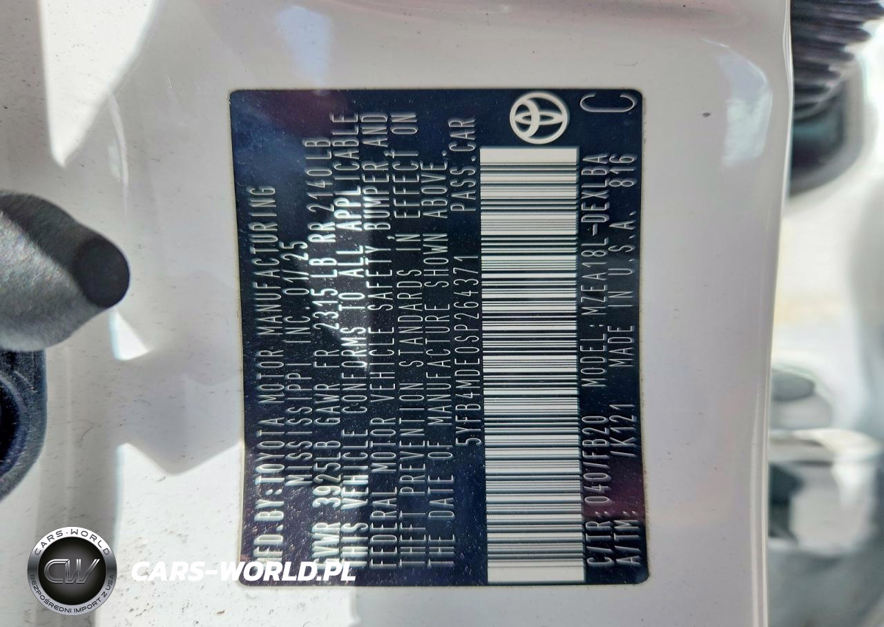 Copart Nr: C-48684646 VIN: 5YFB4MDE0SP264371 Port: Elizabeth, NJ