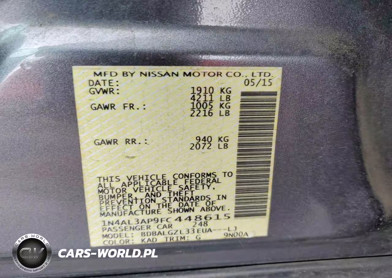 Copart Nr: C-48685666 VIN: 1N4AL3AP9FC448615 Port: Savannah, GA