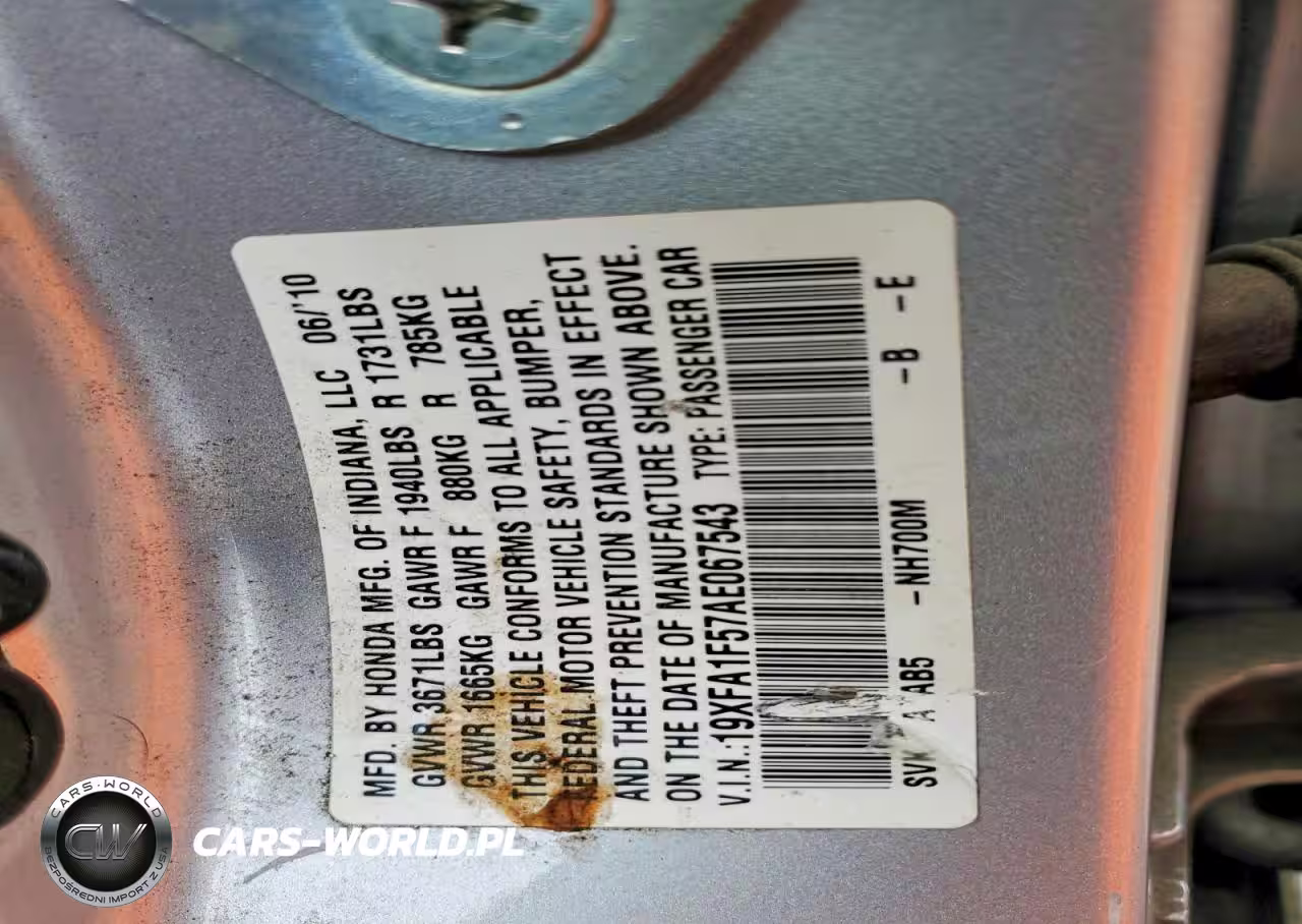 Copart Nr: C-48689766 VIN: 19XFA1F57AE067543 Port: Los Angeles, CA