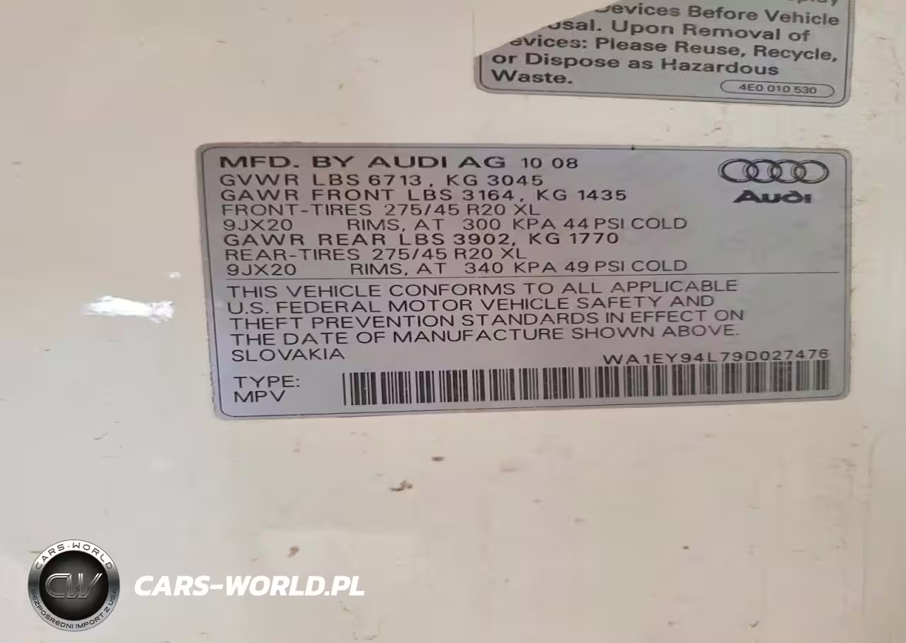 Copart Nr: C-48700926 VIN: WA1EY94L79D027476 Port: Los Angeles, CA
