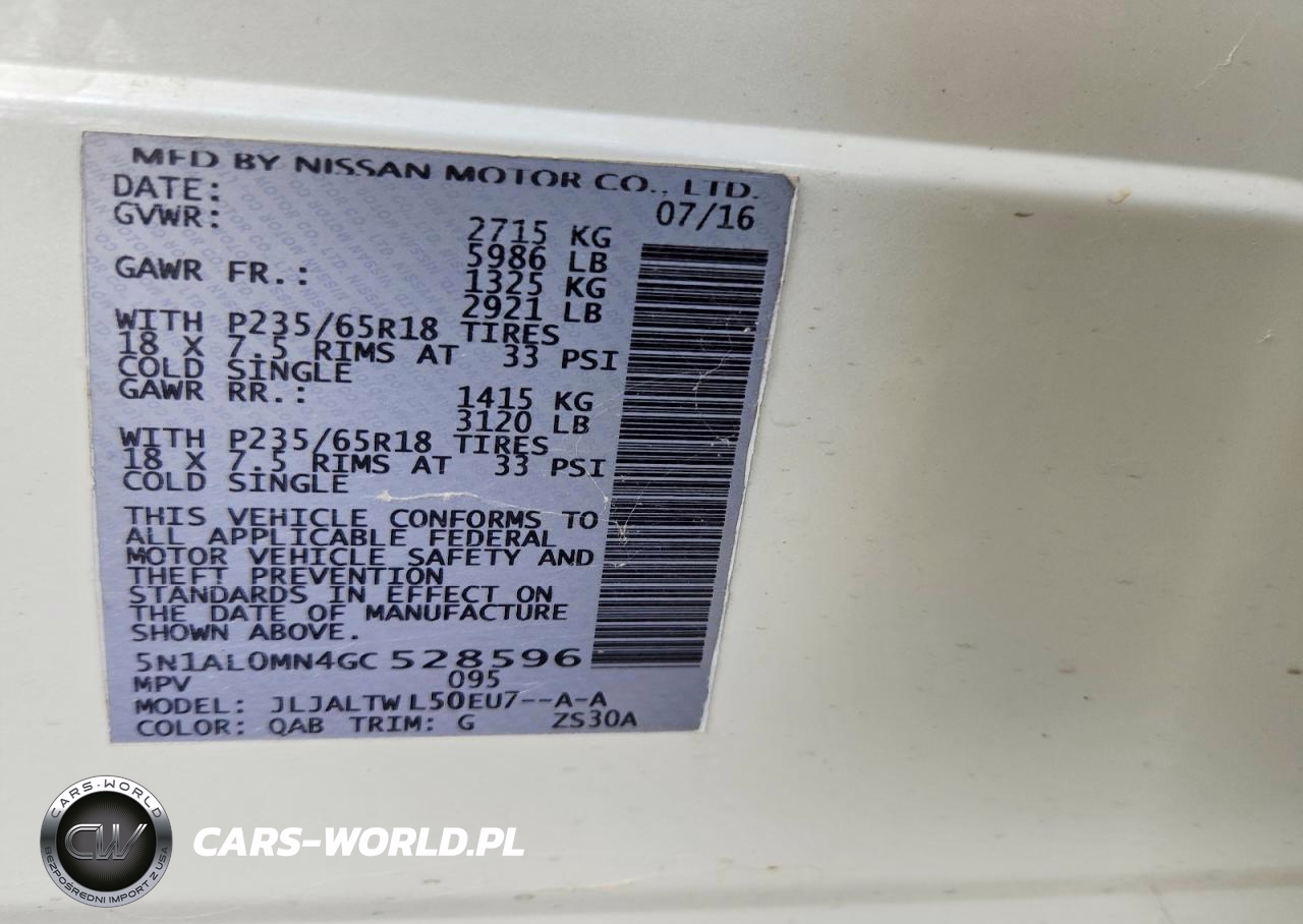 Copart Nr: C-48702286 VIN: 5N1AL0MN4GC528596 Port: Houston, TX