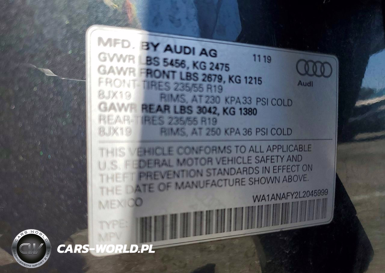 Copart Nr: C-48711496 VIN: WA1ANAFY2L2045999 Port: Los Angeles, CA