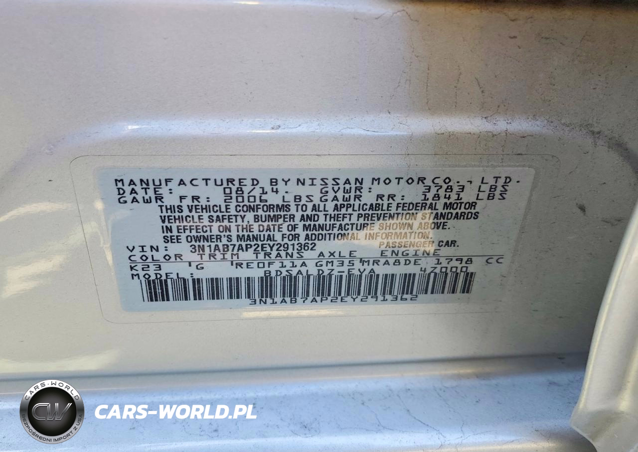Copart Nr: C-48712856 VIN: 3N1AB7AP2EY291362 Port: Los Angeles, CA