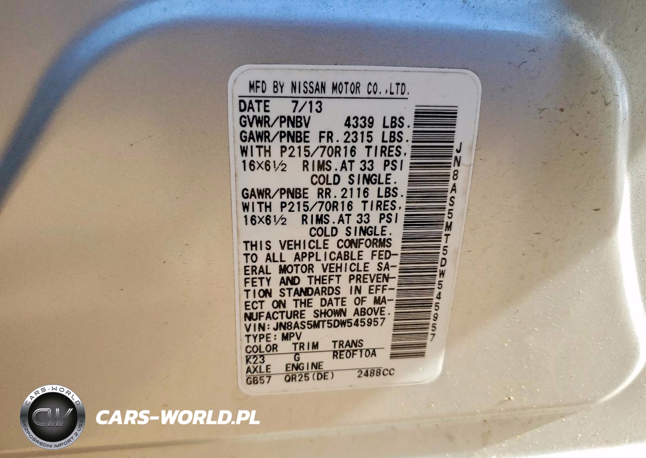 Copart Nr: C-48732006 VIN: JN8AS5MT5DW545957 Port: Houston, TX
