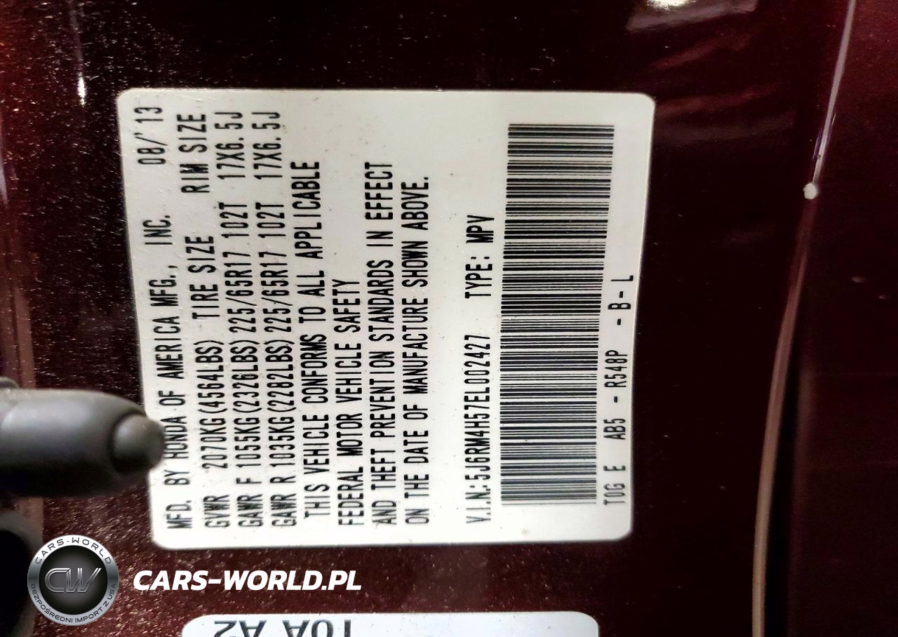 Copart Nr: C-48744726 VIN: 5J6RM4H57EL002427 Port: Elizabeth, NJ