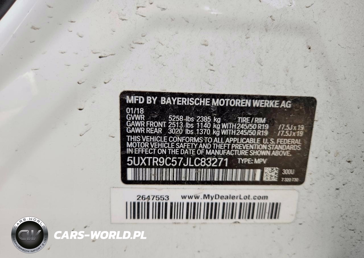 Copart Nr: C-48746026 VIN: 5UXTR9C57JLC83271 Port: Houston, TX