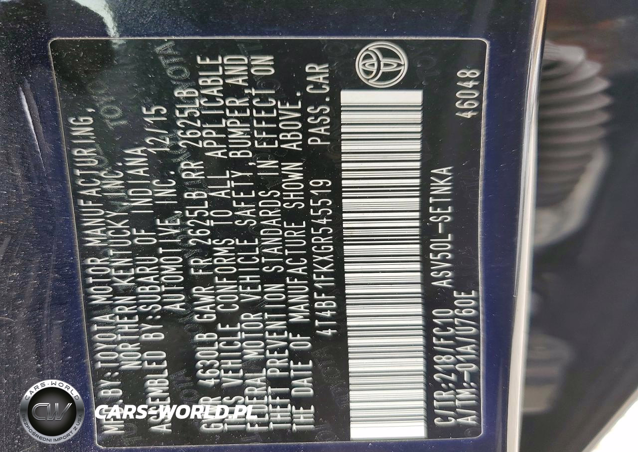 Copart Nr: C-48749296 VIN: 4T4BF1FKXGR545519 Port: Savannah, GA