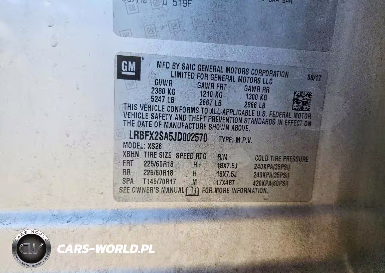 Copart Nr: C-48764106 VIN: LRBFX2SA5JD002570 Port: Elizabeth, NJ