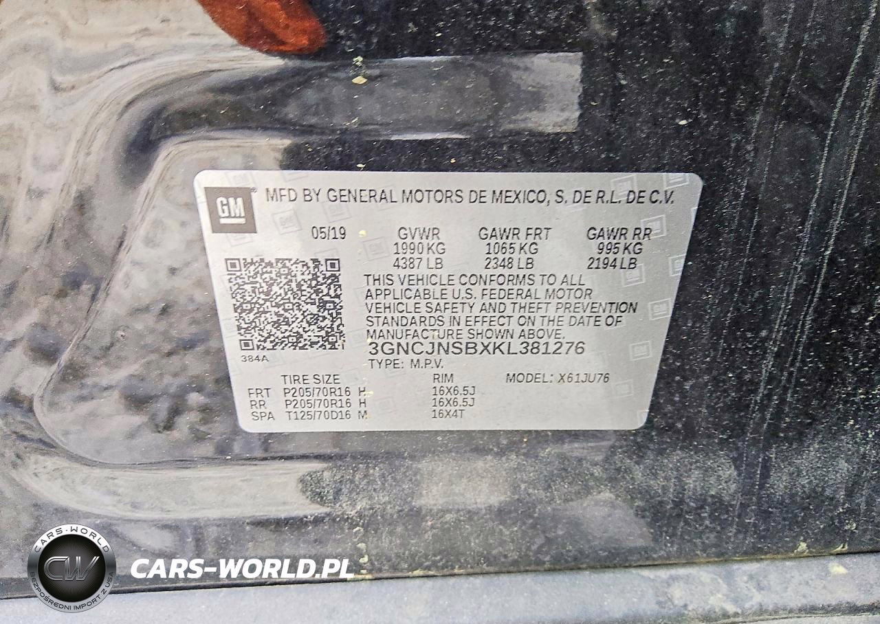 Copart Nr: C-48769516 VIN: 3GNCJNSBXKL381276 Port: Savannah, GA