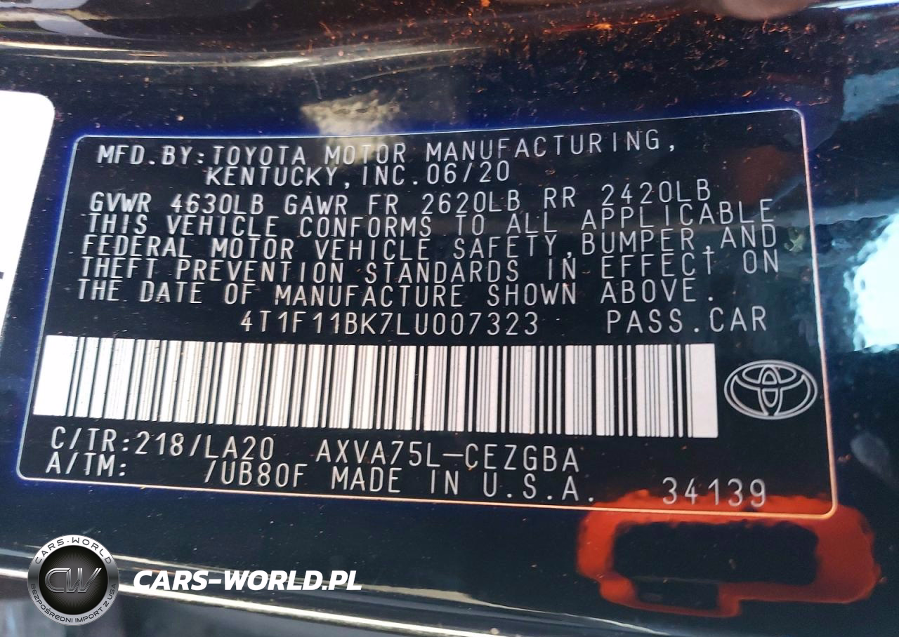 Copart Nr: C-48778836 VIN: 4T1F11BK7LU007323 Port: Elizabeth, NJ