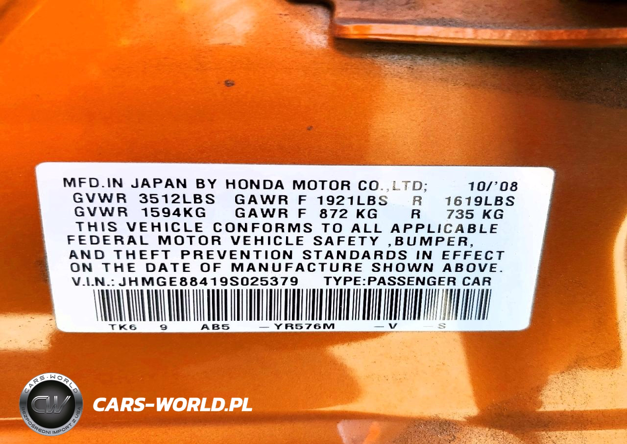 Copart Nr: C-48790346 VIN: JHMGE88419S025379 Port: Los Angeles, CA