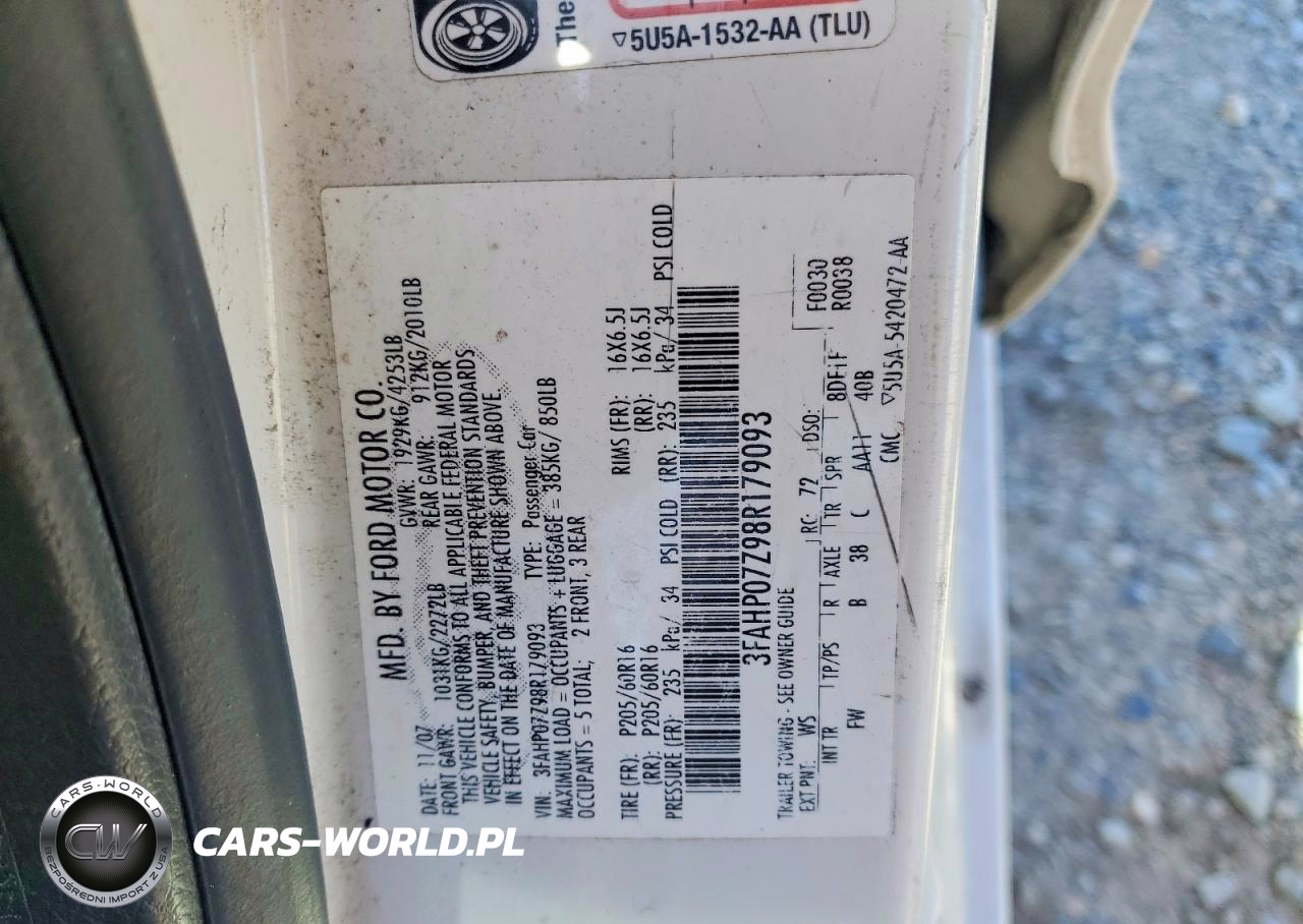 Copart Nr: C-48794086 VIN: 3FAHP07Z98R179093 Port: Los Angeles, CA