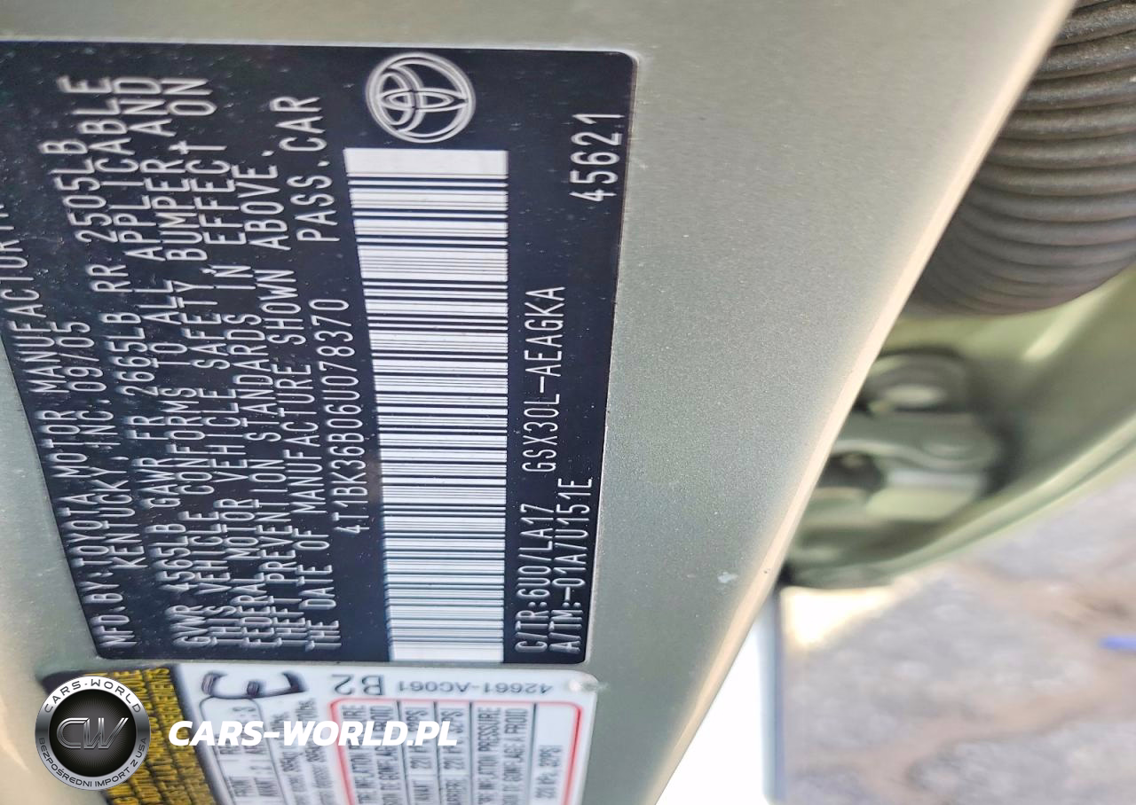 Copart Nr: C-48799826 VIN: 4T1BK36B06U078370 Port: Savannah, GA