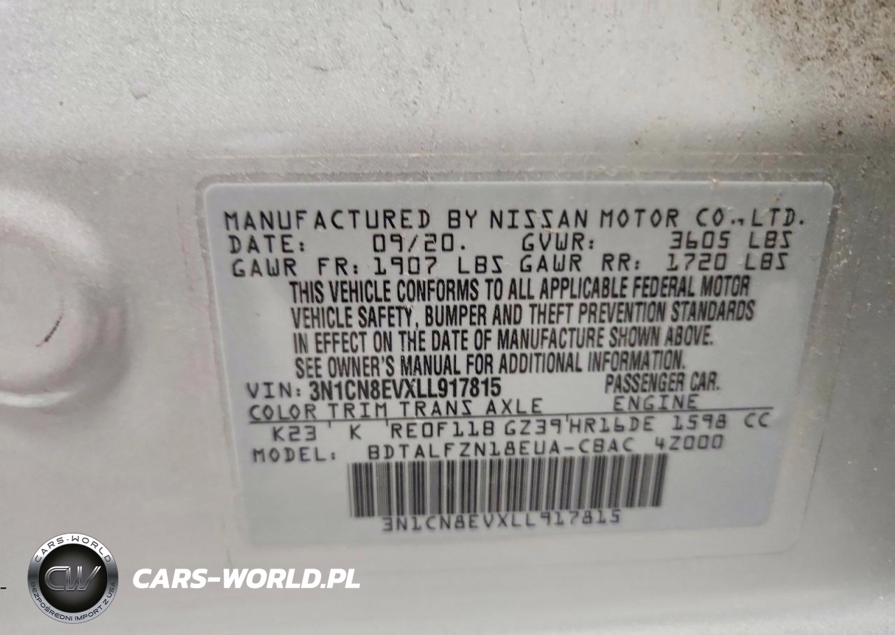Copart Nr: C-48805626 VIN: 3N1CN8EVXLL917815 Port: Indianapolis, IN