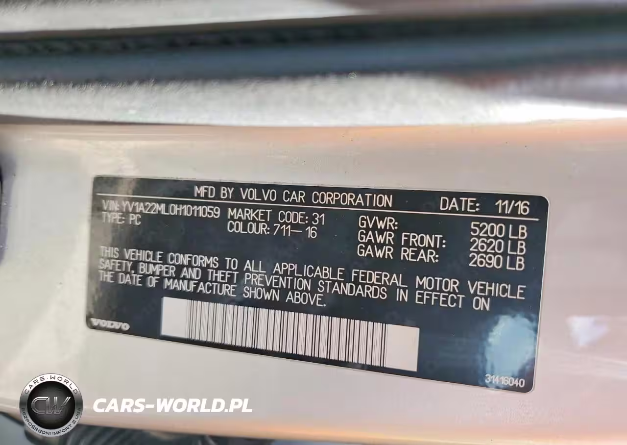 Copart Nr: C-48812506 VIN: YV1A22ML0H1011059 Port: Elizabeth, NJ