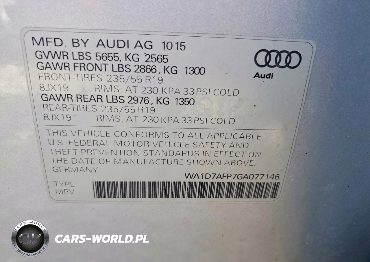 Copart Nr: C-48822796 VIN: WA1D7AFP7GA077146 Port: Elizabeth, NJ
