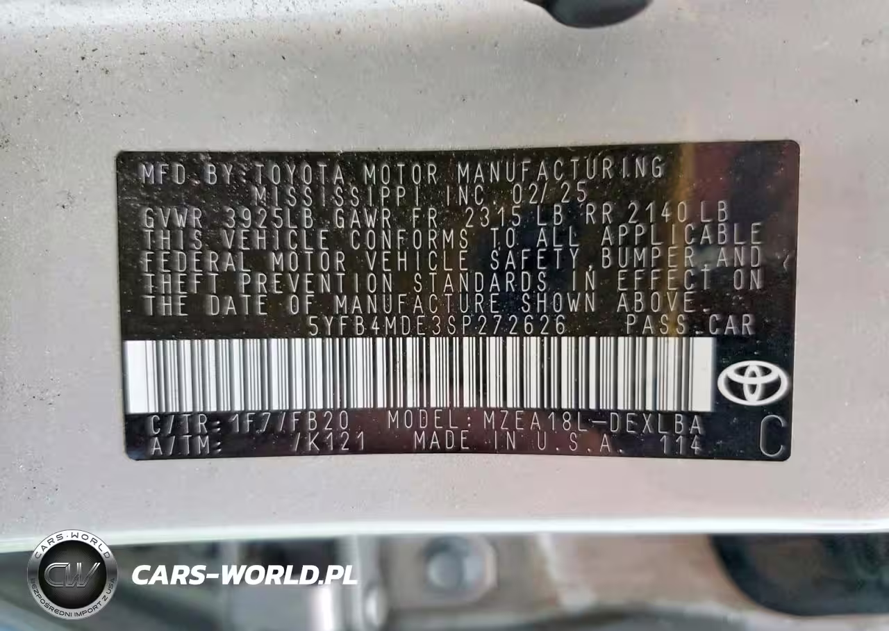 Copart Nr: C-48834466 VIN: 5YFB4MDE3SP272626 Port: Savannah, GA