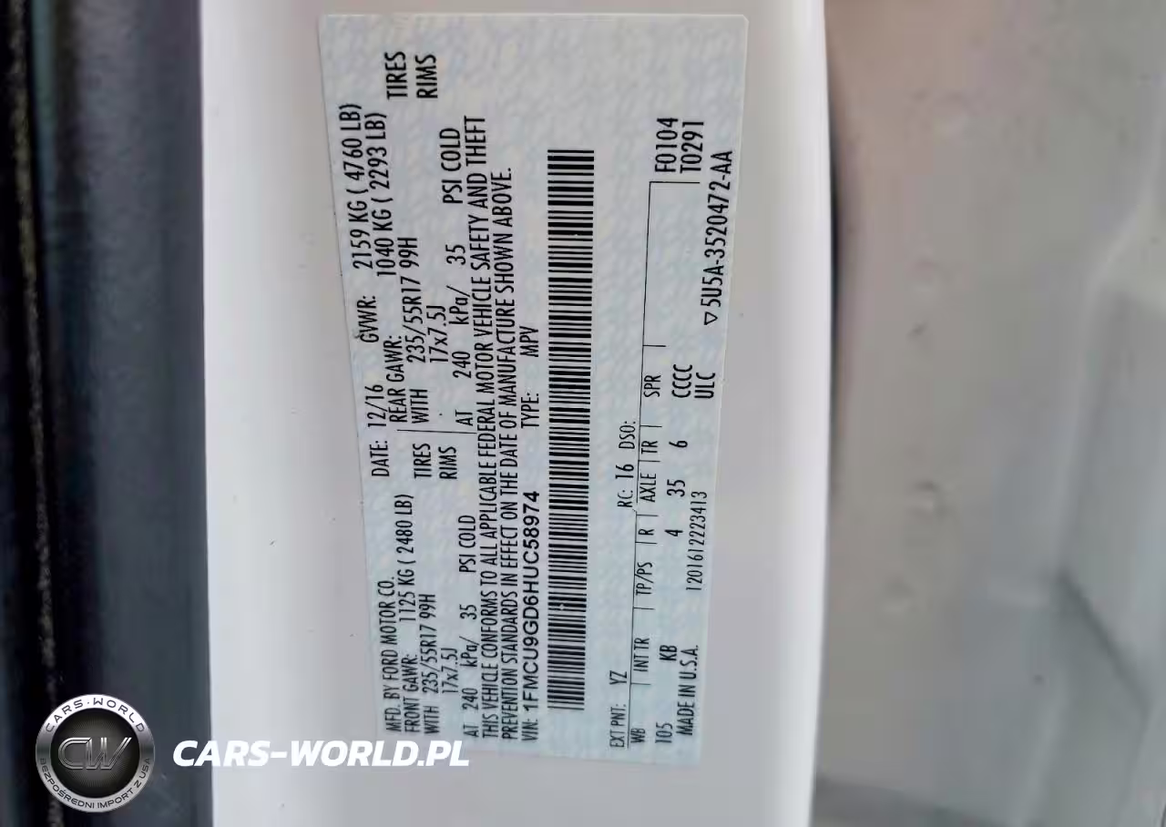 Copart Nr: C-48835176 VIN: 1FMCU9GD6HUC58974 Port: Elizabeth, NJ