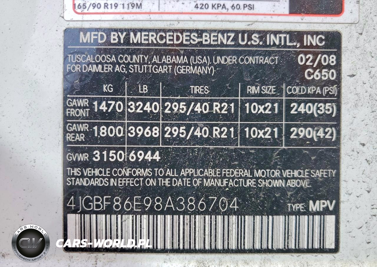 Copart Nr: C-48839786 VIN: 4JGBF86E98A386704 Port: Elizabeth, NJ