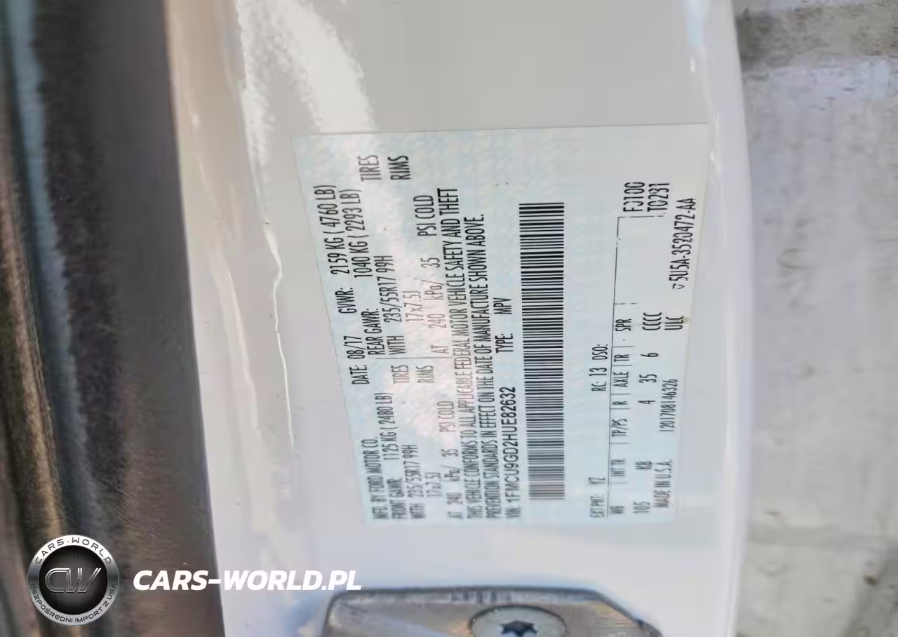 Copart Nr: C-48863416 VIN: 1FMCU9GD2HUE82632 Port: Elizabeth, NJ