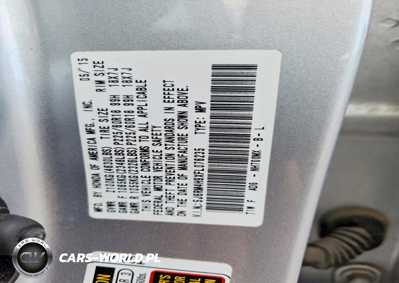 Copart Nr: C-48872196 VIN: 5J6RM4H9XFL076235 Port: Los Angeles, CA