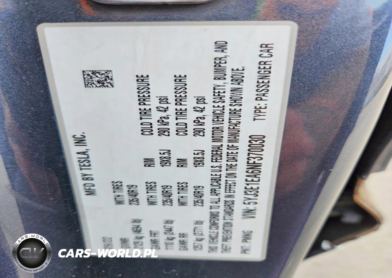 Copart Nr: C-48878016 VIN: 5YJ3E1EA6NF370030 Port: Los Angeles, CA